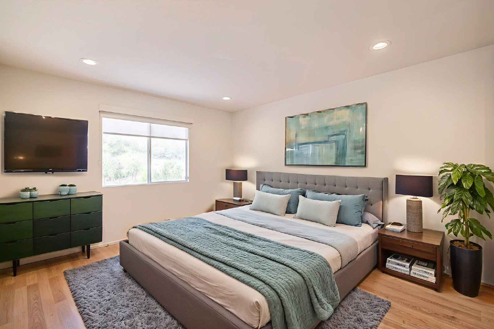 Spacious loft and three additional bedrooms with wood laminate flooring